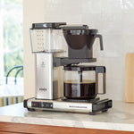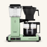 The selector switch on Moccamaster KBGV Select allows you to choose between brewing a half or full carafe. The brewing speed and hotplate temperature adjust according to your choice, brewing either amount to the golden cup standard. The brew basket automatically stops the flow of coffee when removing the carafe. All glass carafe brewers feature a hotplate with an independent heating element that holds your coffee at the perfect temperature.